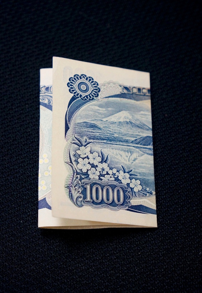 ①お札はまず、新札を用意します。(ちなみに、新札を用意できず写真は違います。すみません。)顔のある方頭を上にして置きます。