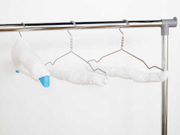 その時はこんなふうに、ハンガーにタオルを巻いておくとすべり止めになり、ハンガー跡がつくのも防げます。