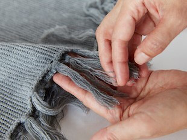 毛糸のフリンジはからまりやすく、写真のように一度からまってしまうとほどくのも大変!フリンジつきのポンチョなどを洗濯機から出した時、ぐちゃぐちゃになっていてがっかりした人も少なくないのでは?