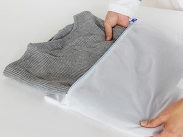 洗う時は、汚れが気になるすそやえり、袖口が外側になるようにたたんでネットに入れ、洗濯機の手洗いコースまたはドライコース、もしくは手洗いで洗濯します。