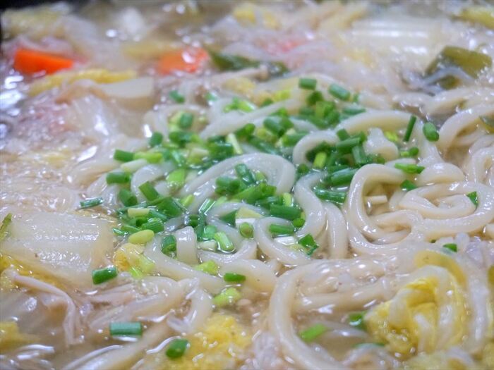 〆は雑炊・・・となるところですが我が家は雑炊よりもうどん。これがまた旨みを吸って味しい~