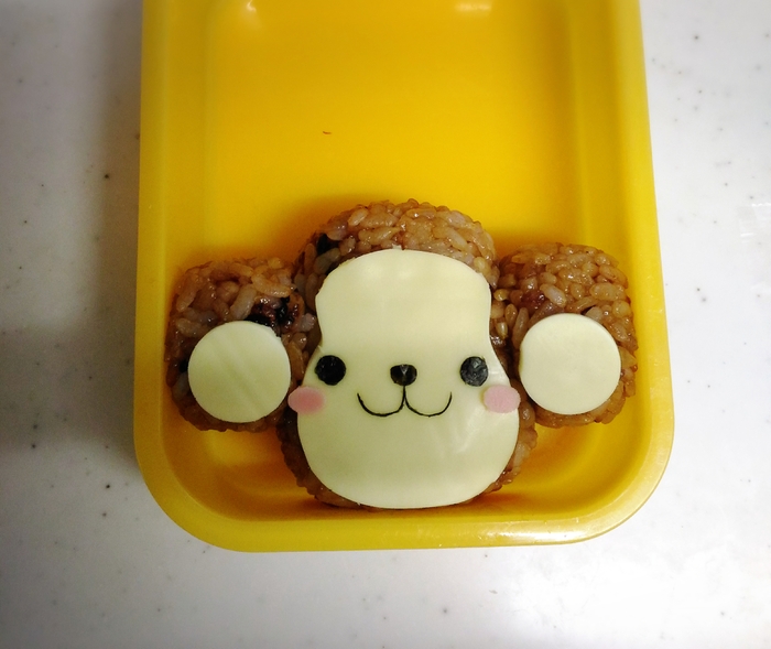 顔のパーツは海苔でカットして、ほっぺはハムなどで。
