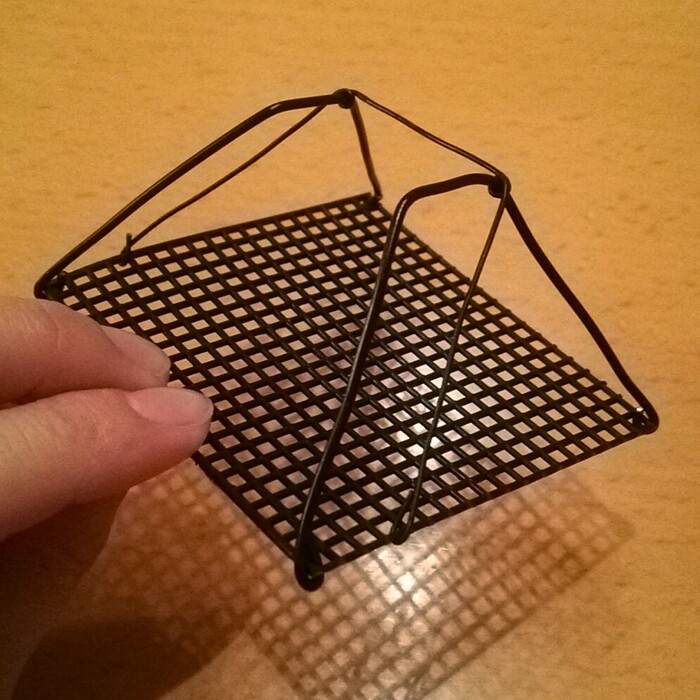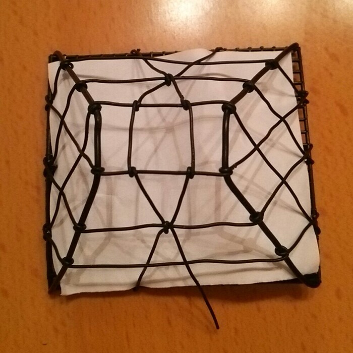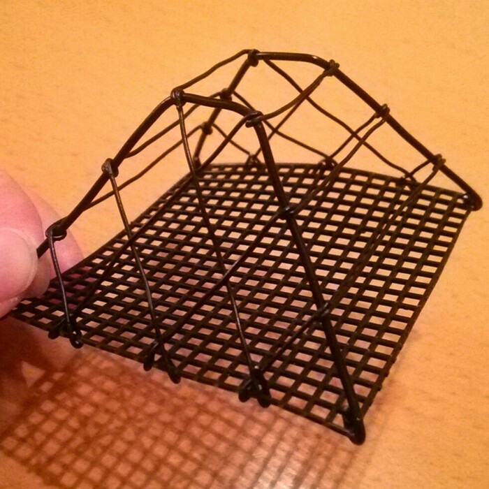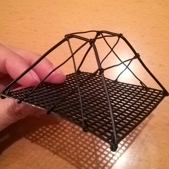屋根の横部分(幅が狭い方)は、最初に太いワイヤーをかけた台形を枠にしてワイヤーが網目状にかかった状態になります。