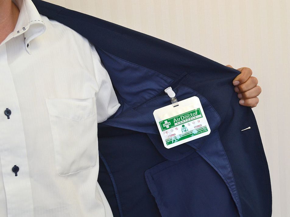 お父さんや男の子にはこちら、「携帯用エアドクター消臭剤」。ウイルス・菌・ニオイが気になるときにクリップで止めて携帯できます。