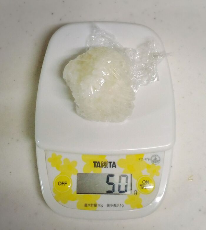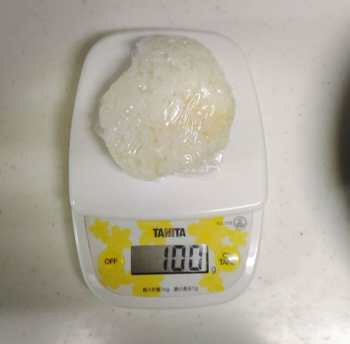 おサルサンの顔の中心部分に使うご飯は100gです。