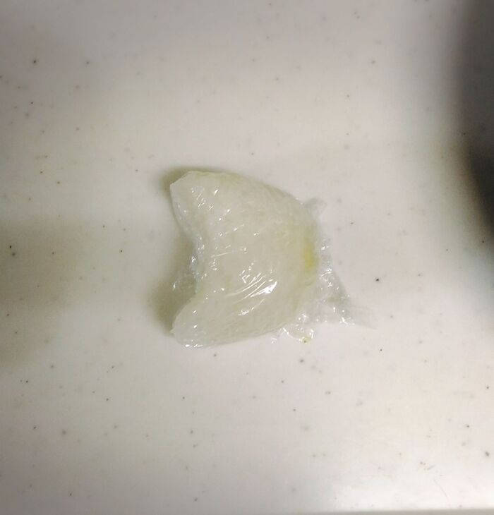 ラップに包んで、あまり固く握らず平たい丸にする。
