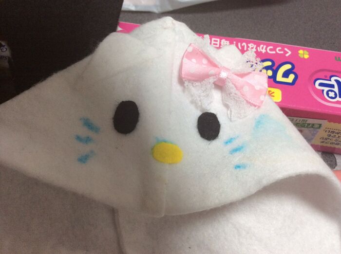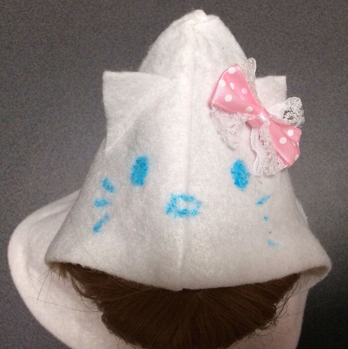 フードの所に三角にカットした耳を付けて、リボンを縫い付ける。
