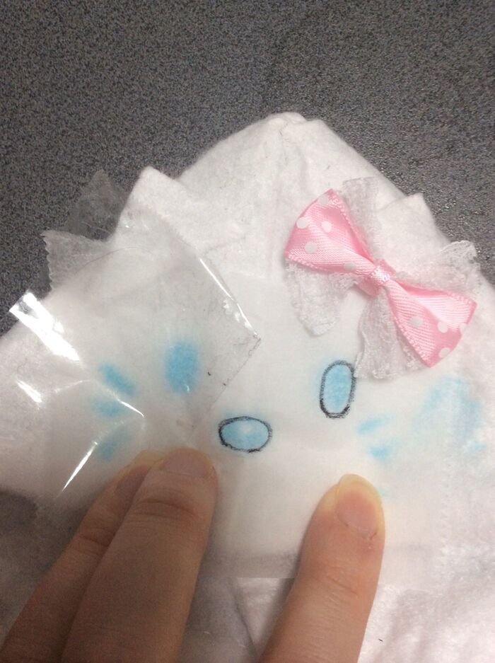水で消えるチャコペンもしくは、時間が経つと消えるチャコペンで、キティちゃんの目、鼻、ヒゲを描く。