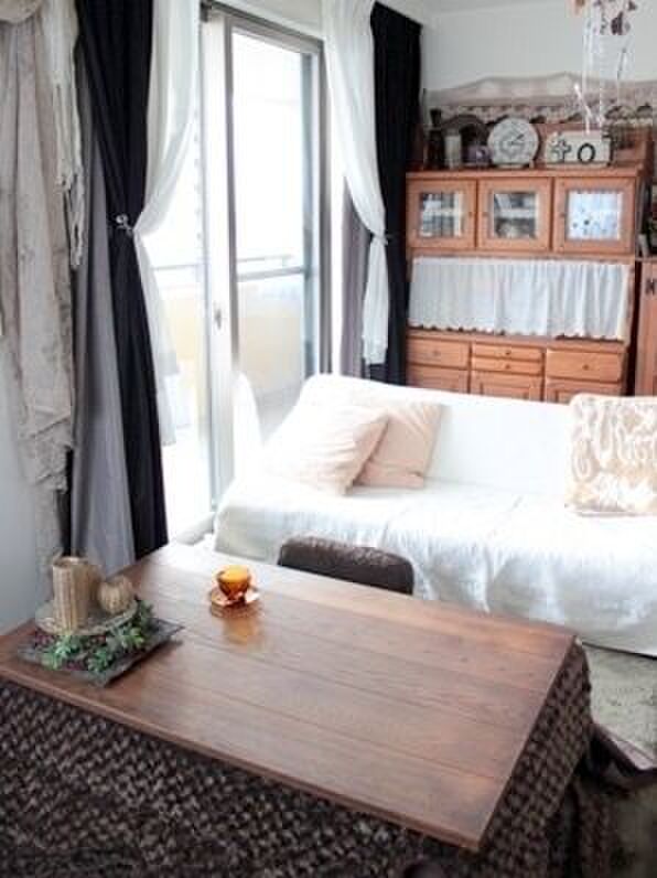 「コタツの位置を窓から離せばいいのでは?」と思われるかもしれませんが、我が家のリビングは狭くって、この画像の向かって右にはダイニングテーブルが迫っているのです。なのでこの位置に置くしか選択の余地がないんです。