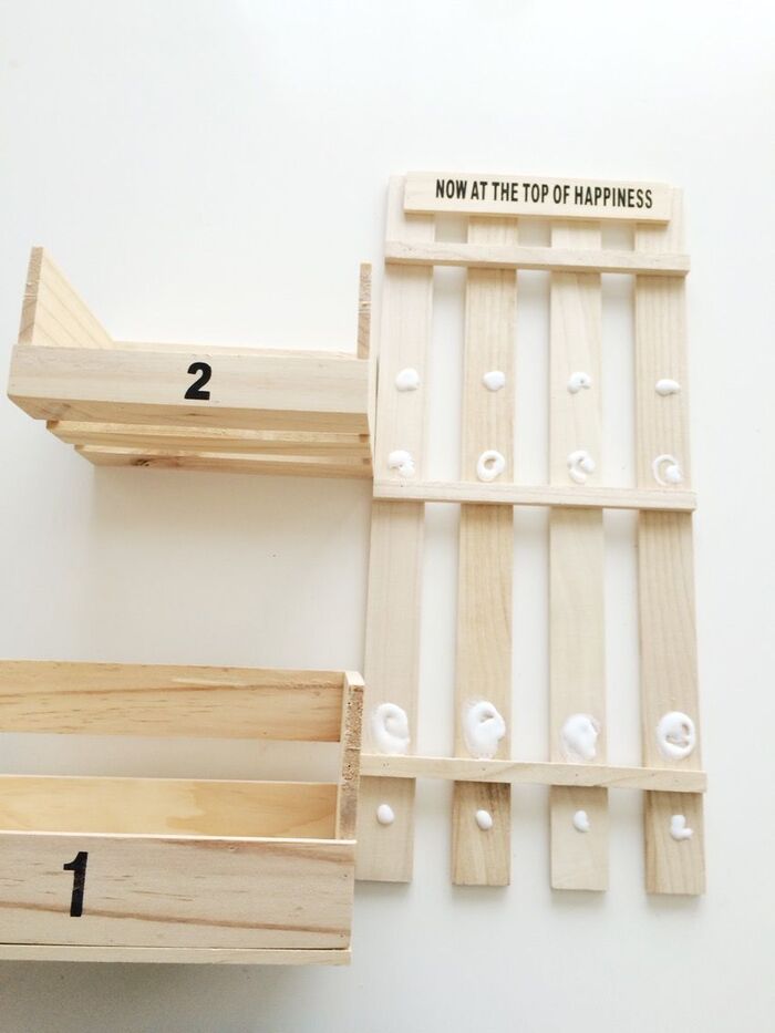 高さを調整する為、1の木箱の先ほどの取った板を、1の木箱の下にボンドでペタリ