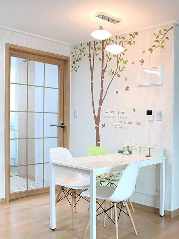 キッチンダイニングには、大きめのステッカーがおすすめです。ナチュラルスタイルのインテリアと白樺の優しい雰囲気がよくマッチしていますよね。