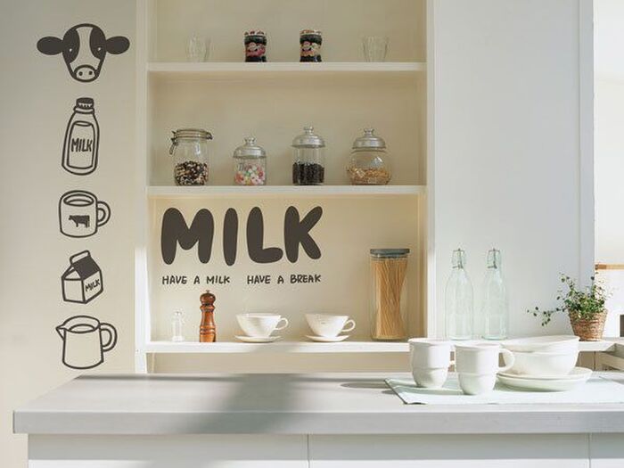 簡単にアレンジできるアイテムといえば、やっぱりウォールステッカーがおすすめです。雰囲気を変えたくなったらはがすだけと、気分転換にももってこいなアイテム!そんなに簡単なのに、抜群のインテリア効果でキッチンの雰囲気を盛り上げてくれます。