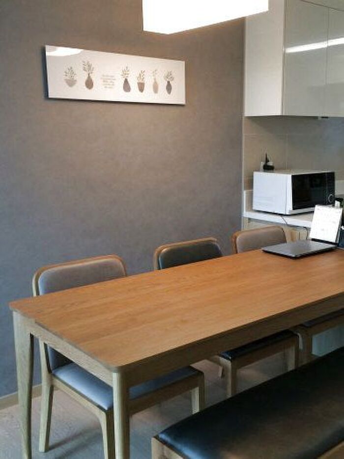 シンプルなキッチンにはシンプルなインテリアを。アクリルパネル特有のシャープな雰囲気が、空間にスタイリッシュなアクセントを加えています。