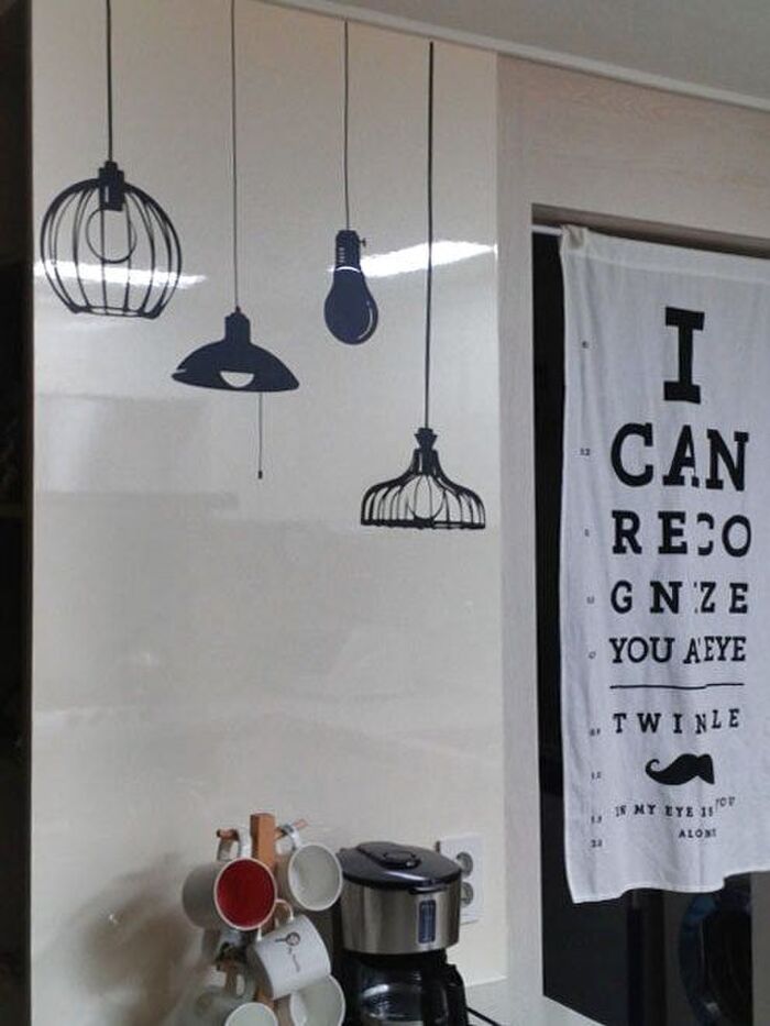 反対に存在感あるライトのステッカーは、空間をシンプルモダンに仕上げるアクセントに。これだけでも十分にインテリア効果を発揮していますよね。