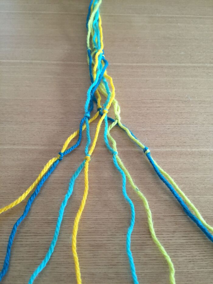一本だと細すぎるようでしたら、最初に8本糸を用意すれば4本ずつ結んでいけます。4本でも並太一玉で作れましたのでお好みでアレンジしてみてください。