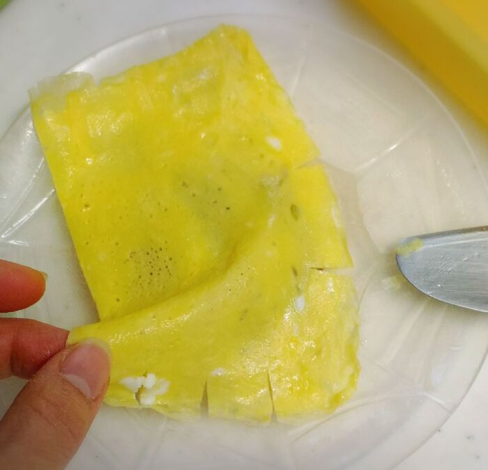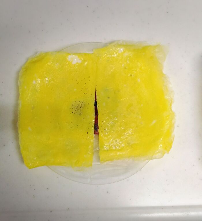 薄焼き卵を一枚作ります。