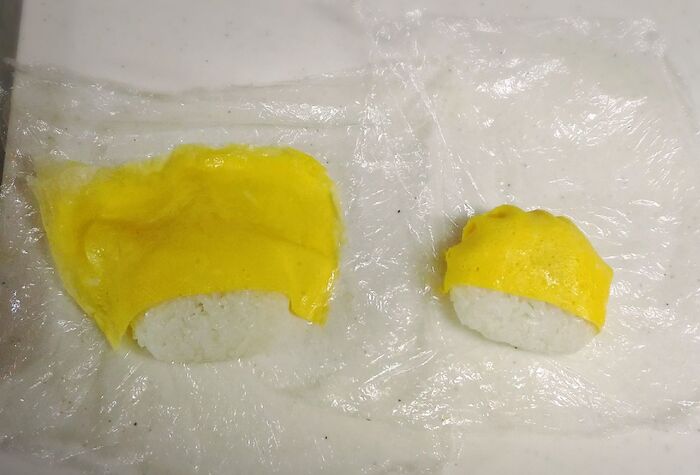 切り込みが入っているので、薄焼き卵が綺麗に馴染むはずです。
