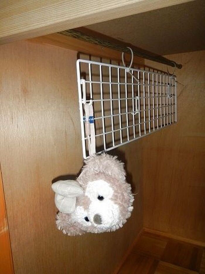 ワイヤーネットにフックを先に取り付けておくといいよ。