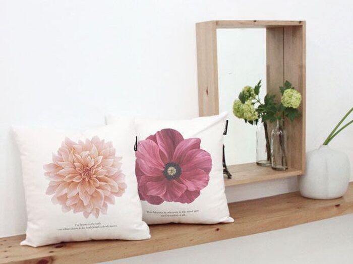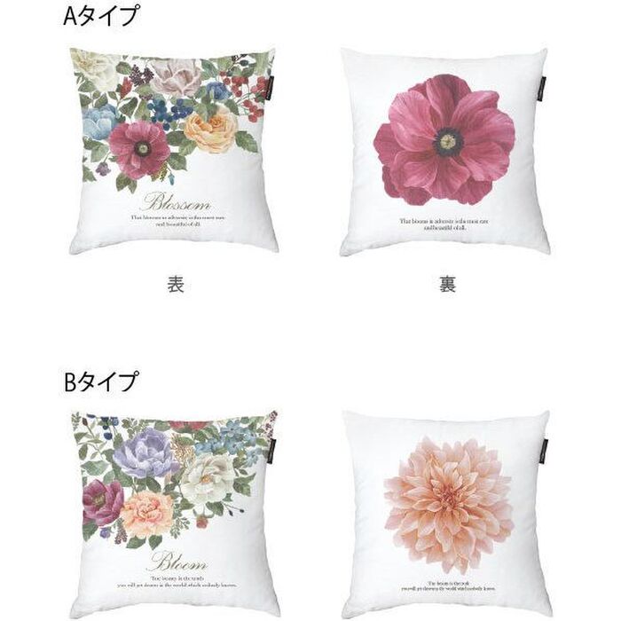 同じタイプのクッションを組み合わせて、ひとつの花を表裏の異なるデザインでアレンジしたり、他の花同士を組み合わせて裏面で統一してコーディネートしたり、さまざまな組み合わせをお楽しみいただけます。