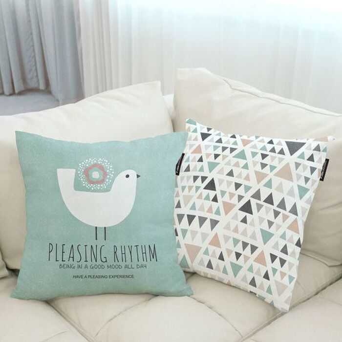 ミントグリーンのさわやかなカラーと、キュートなイラストがマッチしたクッション「マイリトルラバー」は、2016年春夏のトレンドカラーを思わせる、優しいパステルカラーが魅力。