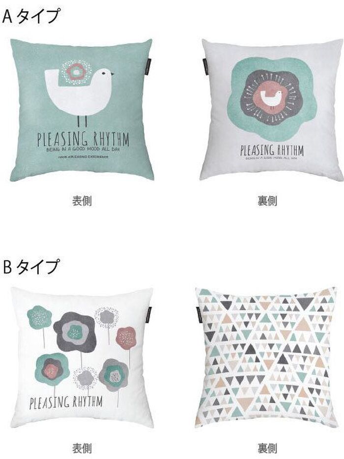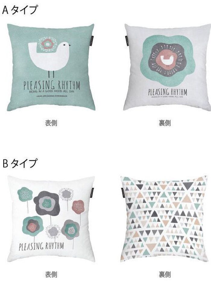 写真ではAタイプ、Bタイプの2つのクッションをそれぞれ表と裏を組み合わせてアレンジ。同じクッションでも、デザインが異なるので組み合わせ方で雰囲気がちょっと違って見えますよね。