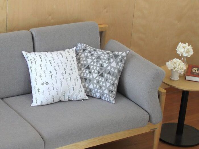 表と裏でデザインの異なるクッションは、雰囲気を変えたい時、気分転換をしたい時にクッションをひっくり返すだけ。それだけで雰囲気を変えることができるんです。