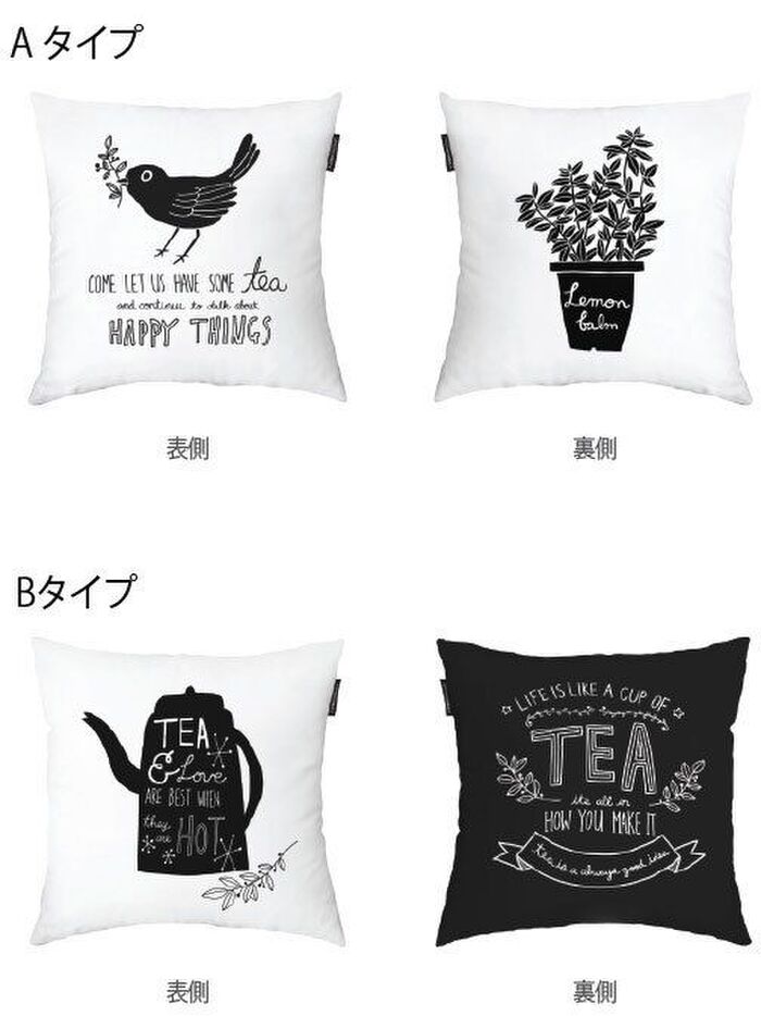 ヴィンテージ感のある可愛らしいハンドイラストを、ブラック&ホワイトでモダンにまとめたクッション「レモンバーム」。