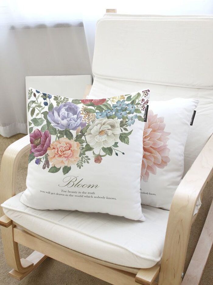 繊細に描かれた3種類の花を、それぞれダイナミックに一輪と鮮やかなブーケにして両面にデザインしたクッション「フィオリータ」。