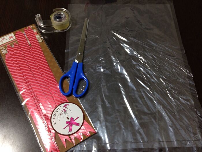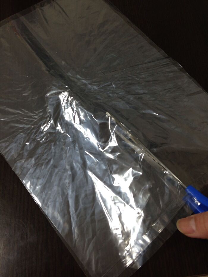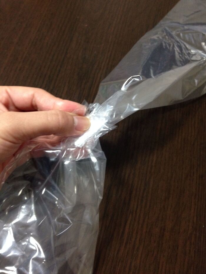 ビニール袋を縦半分に切ります。