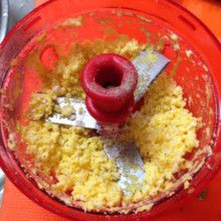 ⑥ここに、茹で卵を刻んで、※の砂糖も混ぜて(スピーディーチョッパーやブレンダーなどがやりやすいです)