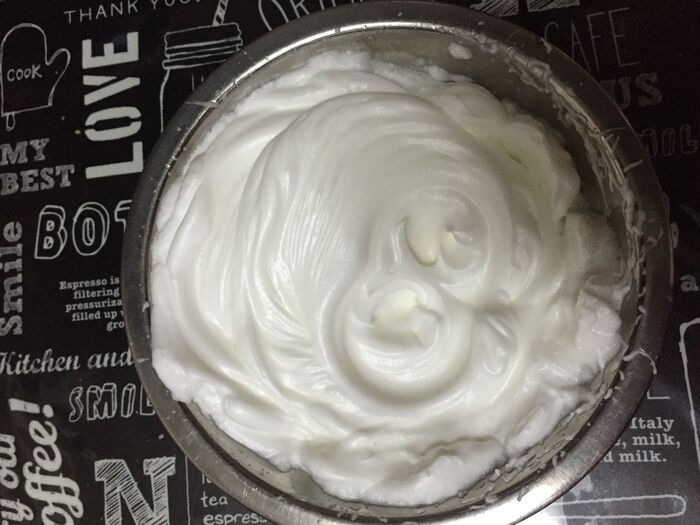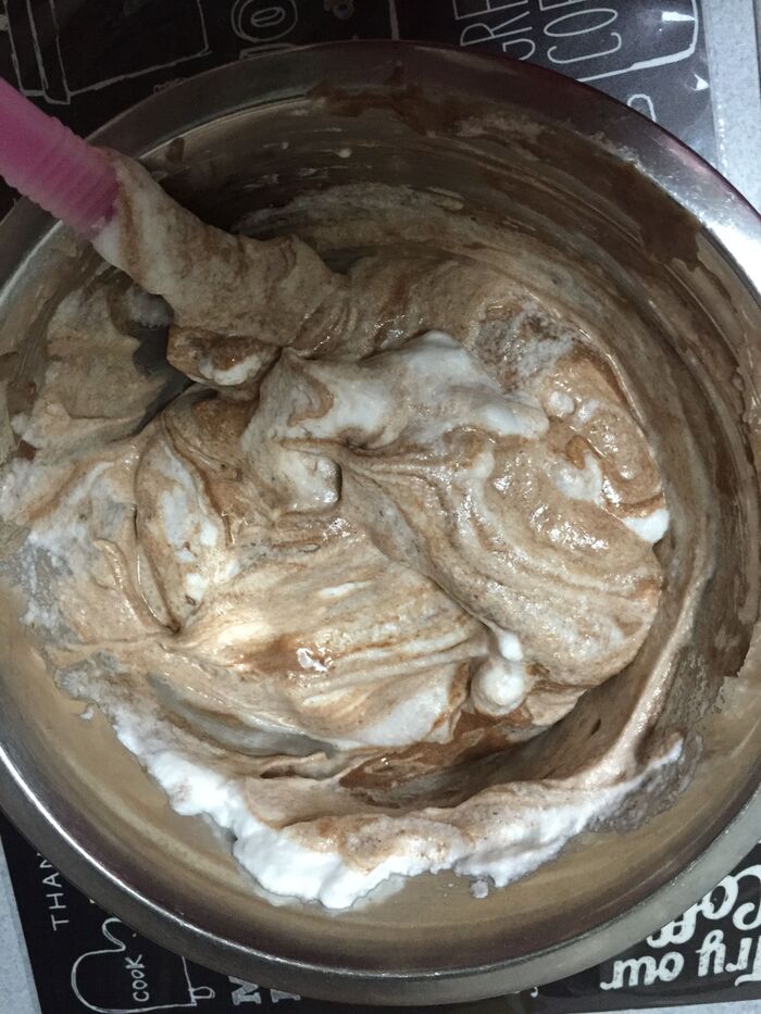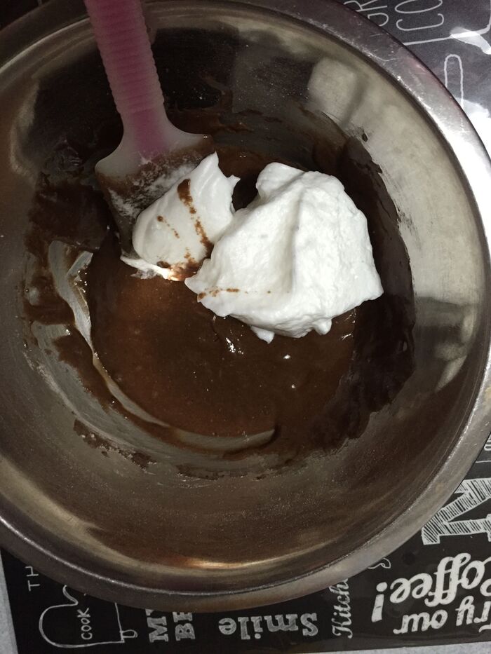 3分の1、メレンゲを入れてしっかりと混ぜます。