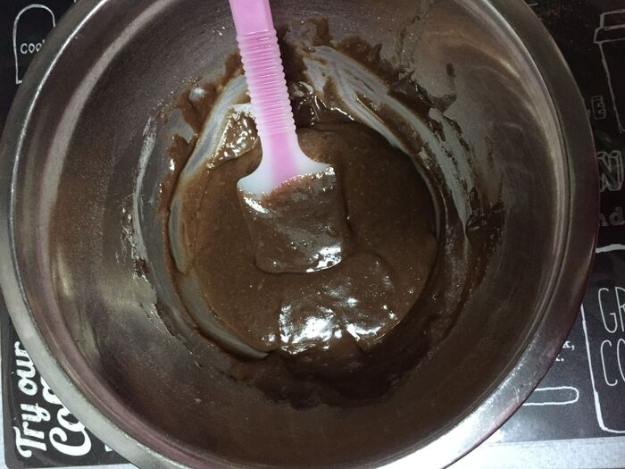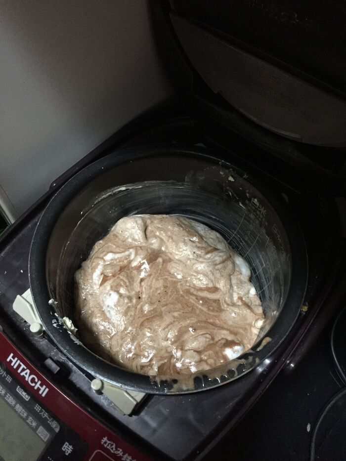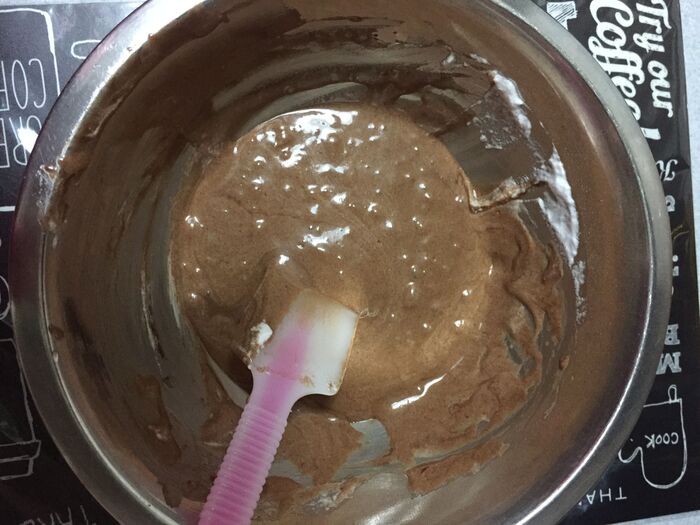 ホットケーキミックスと卵黄と砂糖とサラダ油と牛乳とココアを混ぜます。