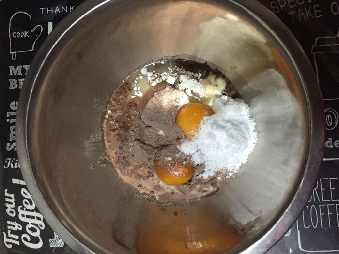 いつものホットケーキを作る時の材料プラス、砂糖とサラダ油とココアで出来ます(^∇^)