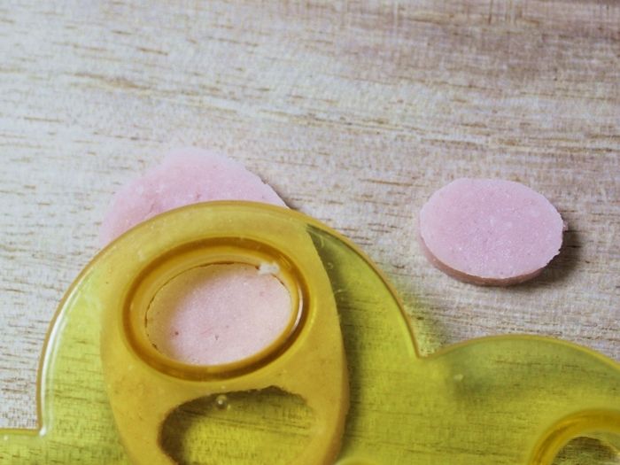 ソーセージを楕円型で抜き鼻を作ります。