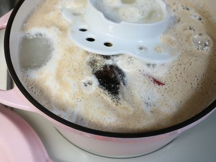 圧力鍋で茹でる場合は米ぬかを入れると蒸気ノズルが詰まる恐れがあり危険です。米ぬかではなく研ぐ前の米を少量入れると米ぬかのかわりになります。