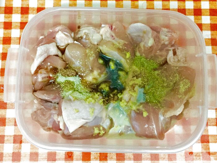 昆布だしの素、黒蜜、豆乳を入れて揉み込みます。