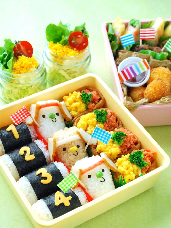スライスチーズを爪楊枝で数字にカットして海苔に貼り付けた「ナンバーおにりぎ」もオススメです。