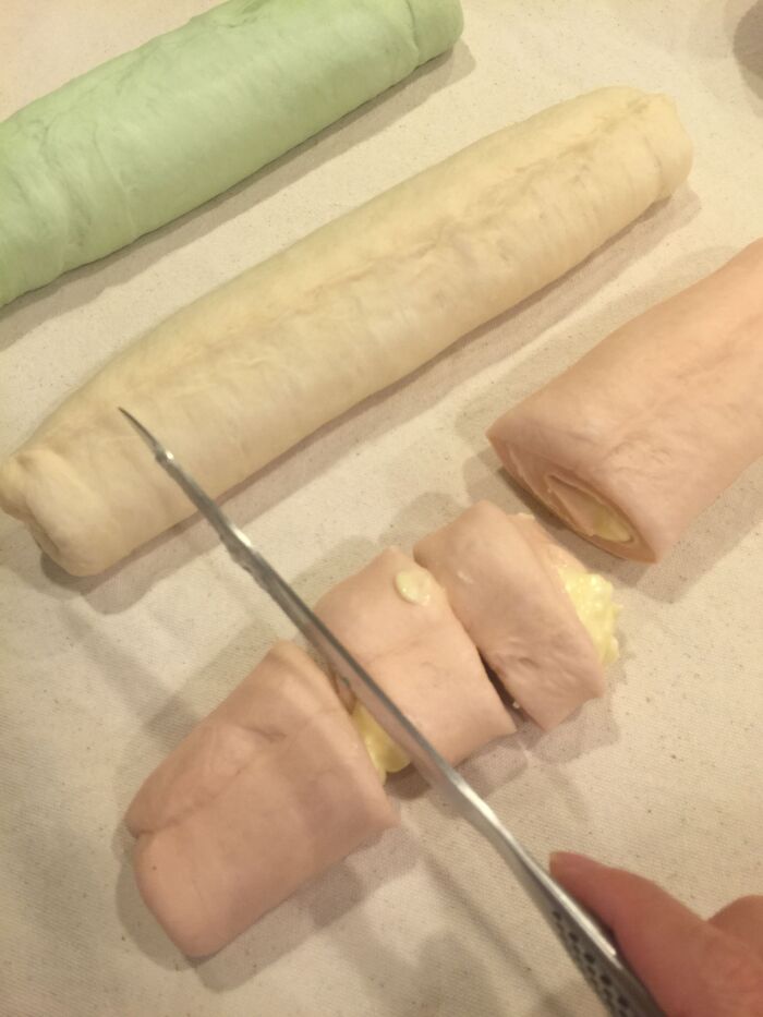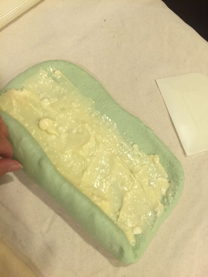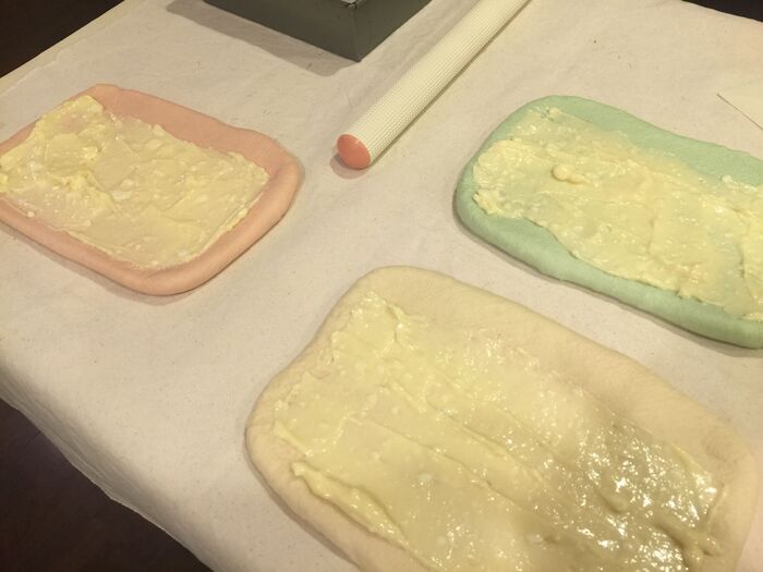 一次発酵が終わった生地をガス抜きして、麺棒で長方形に伸ばす