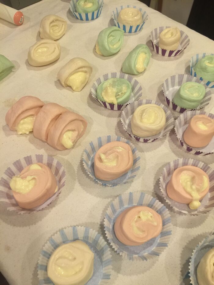 写真はグラシンケースに入れてますが、ちぎりパンの場合はスクエア型に並べる