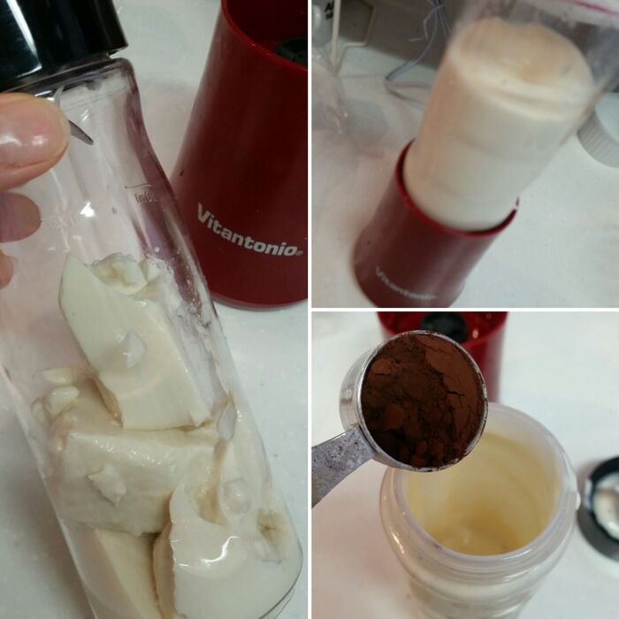 ②フードプロセッサーなどで豆腐を滑らかにしたら、ココアパウダーも加えて再度よく撹拌する。私はビタントニオでやっちゃいます(笑)
