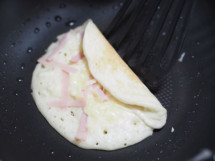 4、3の生地の表面が乾いてきたら、フライ返しで左右を折り畳めば完成です!