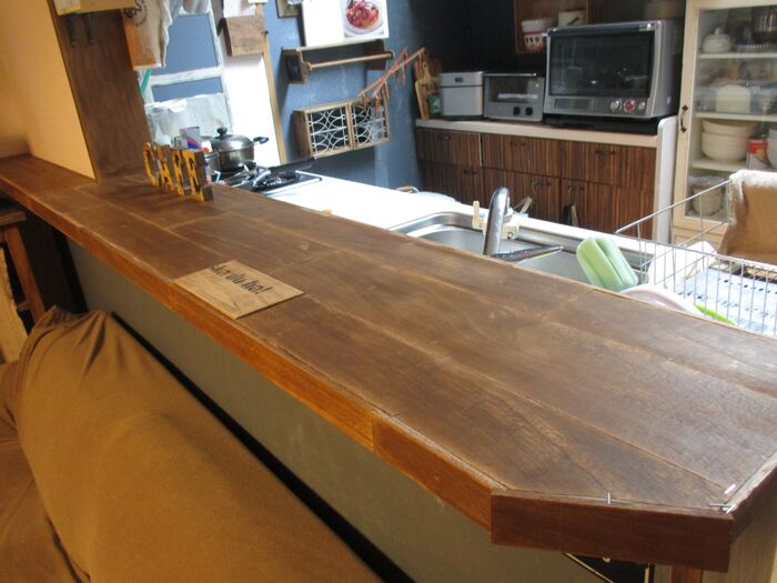 去年、初めてクラックペイント(ひび割れ塗装)に挑戦して微妙な感じに仕上がったわが家のカウンター。。。