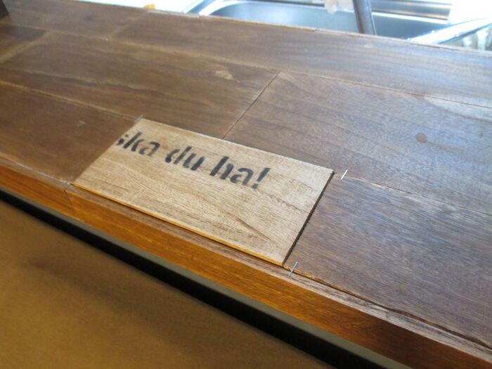 ステンシルシートを木の上に置いて、黒のスタンプ台でぽんぽんしてステンシルしました。