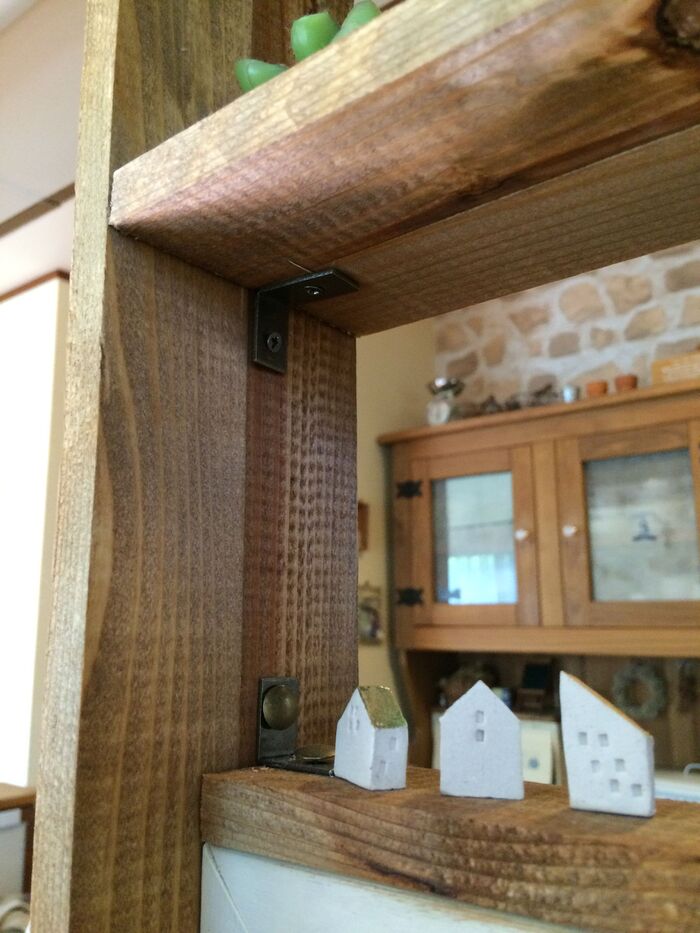 カウンター右側にはホームセンターの木材をカウンターの高さに合わせてカット&塗装したものを柱として立てます。