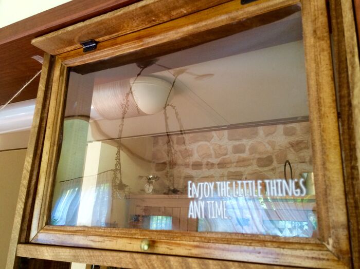 フレームとステンドグラスのサイズが違ったので微調整にスノコの廃材も使ってます。
