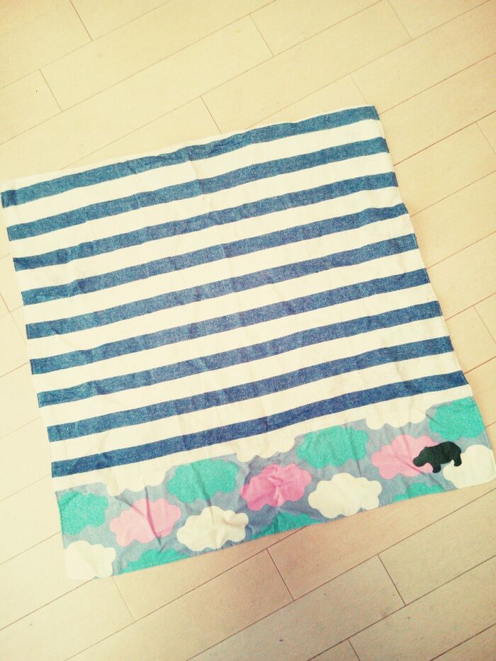裏はストライプをメインに!雲柄は派手になりすぎるのですみっこに。無印で買ったフェルトのアップリケをつけてポイントに♡