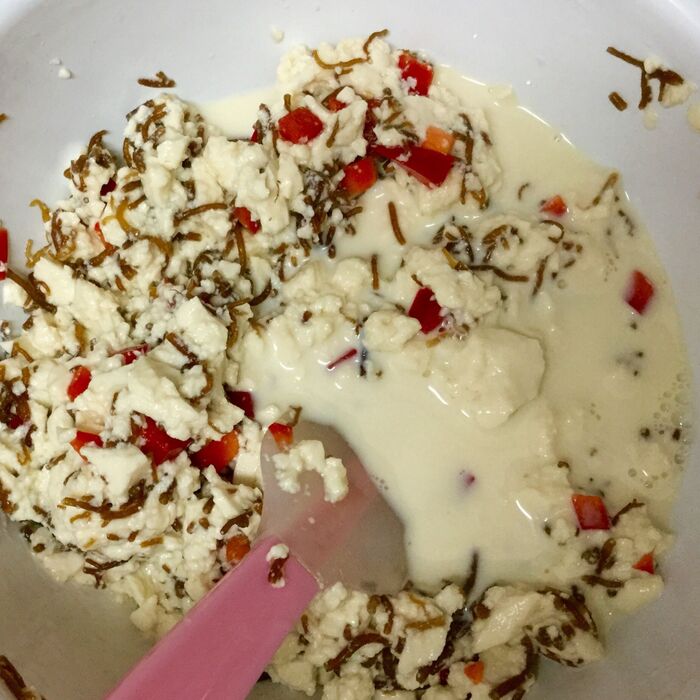 豆腐を加えて混ぜます。