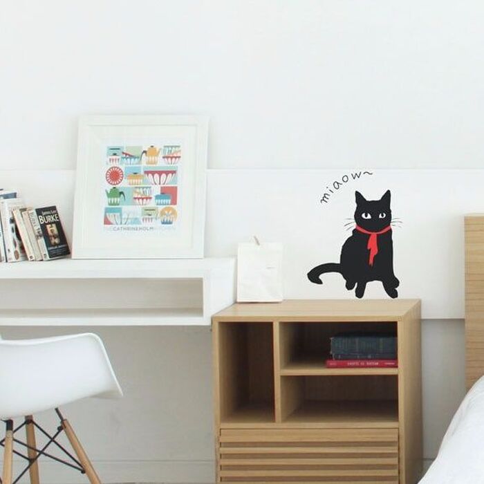 可愛らしい猫のステッカーを、家具の上にちょこんと飾って。まるで本当に猫がいるかのような、遊び心たっぷりのサプライズ演出が楽しめます。