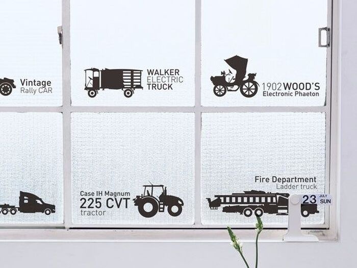 いくつかセットで入っているステッカーの一部を、窓の下にさりげなく貼りつけて。ちょっとしたアクセントになって、空間をモダンな雰囲気に演出しています。