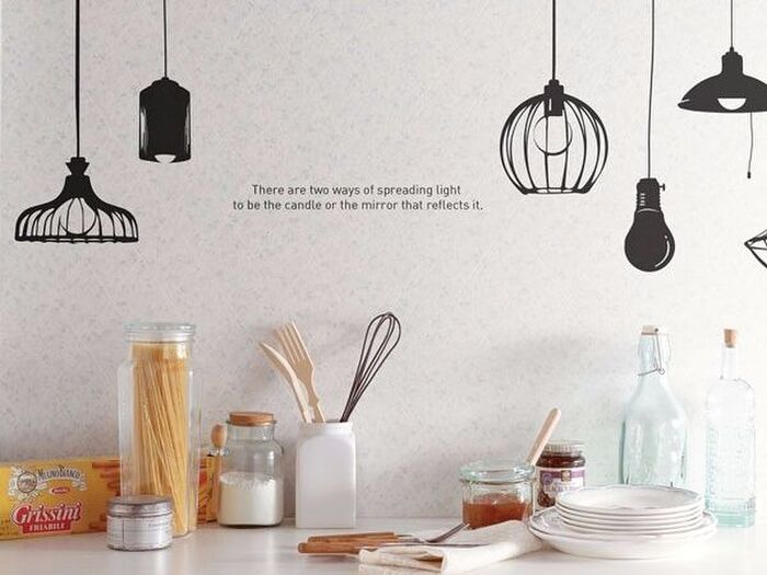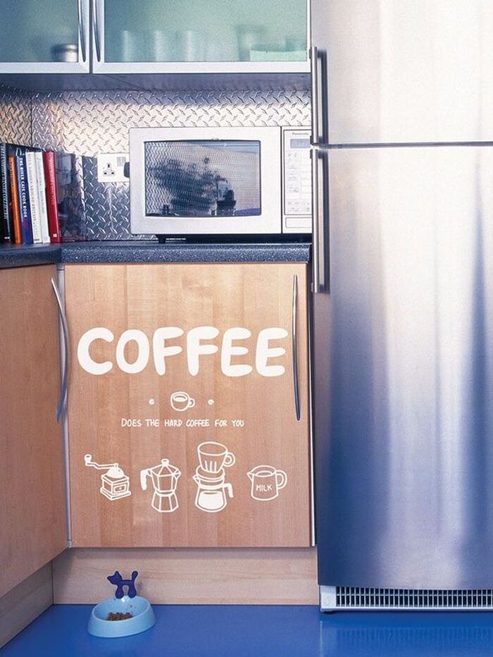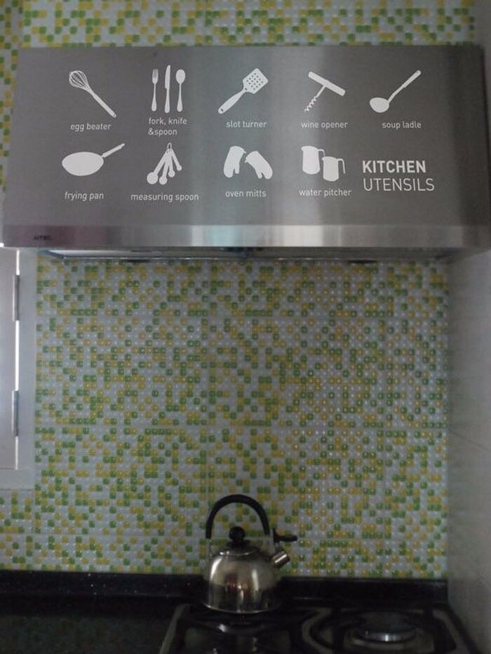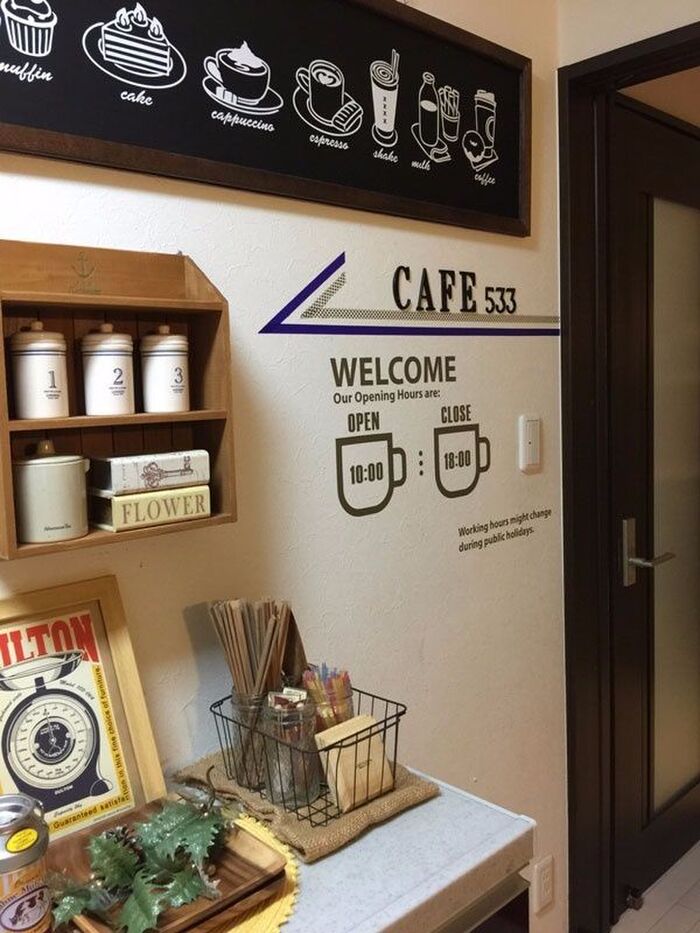 カフェなどオープンキッチンでよく見かけるこのスペース。ウォールステッカーで楽しく飾れば、これだけでも十分にインテリアとして活躍してくれますよね。
